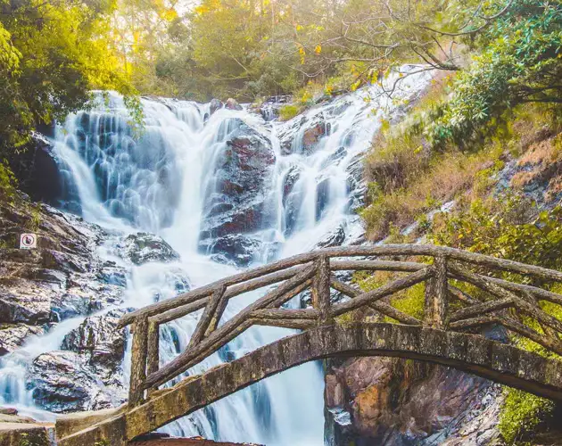 After breakfast, begin with a cable car ride over pine forests and Robin Hills to Truc Lam Pagoda, a serene meditation monastery overlooking Tuyen Lam Lake. Stop at the lake for photos before visiting Datanla Waterfall, where you can ride Asia’s longest roller coaster (optional). Continue to the French Quarter to see colonial-era villas, then enjoy lunch at a local restaurant. In the afternoon, visit Van Thanh Flower Village, the quirky Crazy House, Da Lat Railway Station, and Lam Vien Square. Dinner is at your leisure.