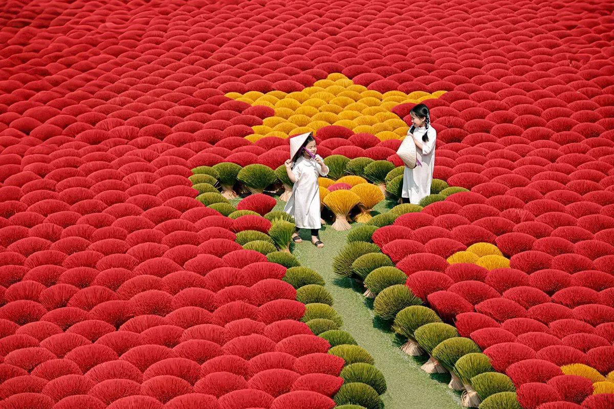Start your journey with pick-up from your hotel in Hanoi Old Quarter. Drive to Quang Phu Cau Incense Village, where locals craft vibrant incense sticks by hand. Wander through fields of red incense drying under the sun — perfect for photos and cultural insight.