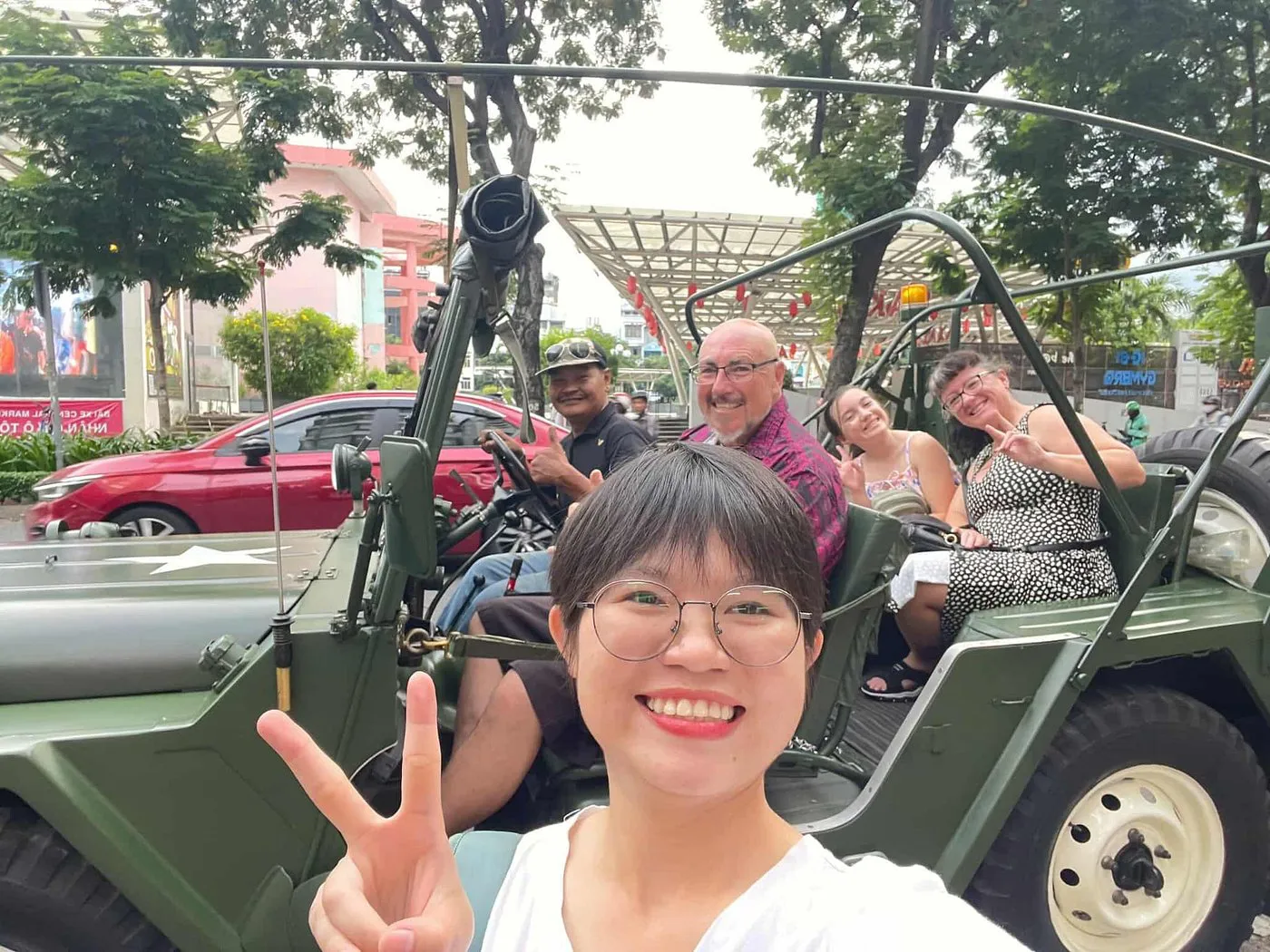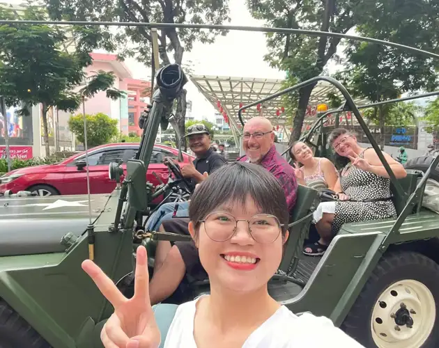 Your guide greets you at your hotel. Hop into your open-top Jeep and begin cruising through Saigon’s lively streets.