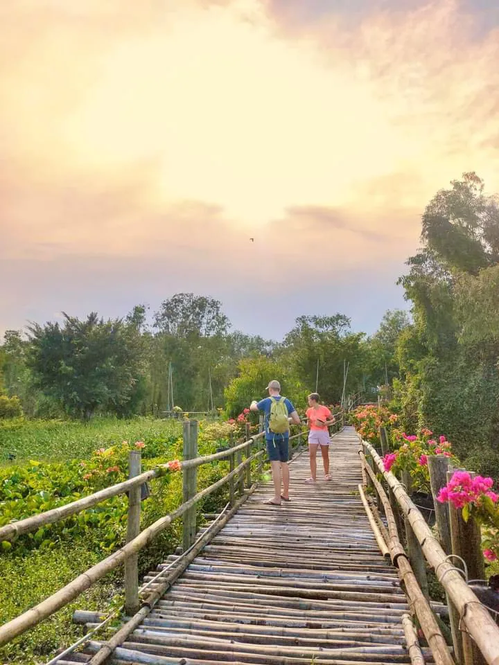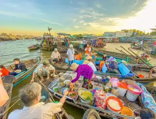 Enjoy breakfast before a boat ride along scenic tributaries of the Hau River. Visit the famous Cai Rang Floating Market, where boats trade produce, noodles, coffee, and daily goods — a vivid look into local life.