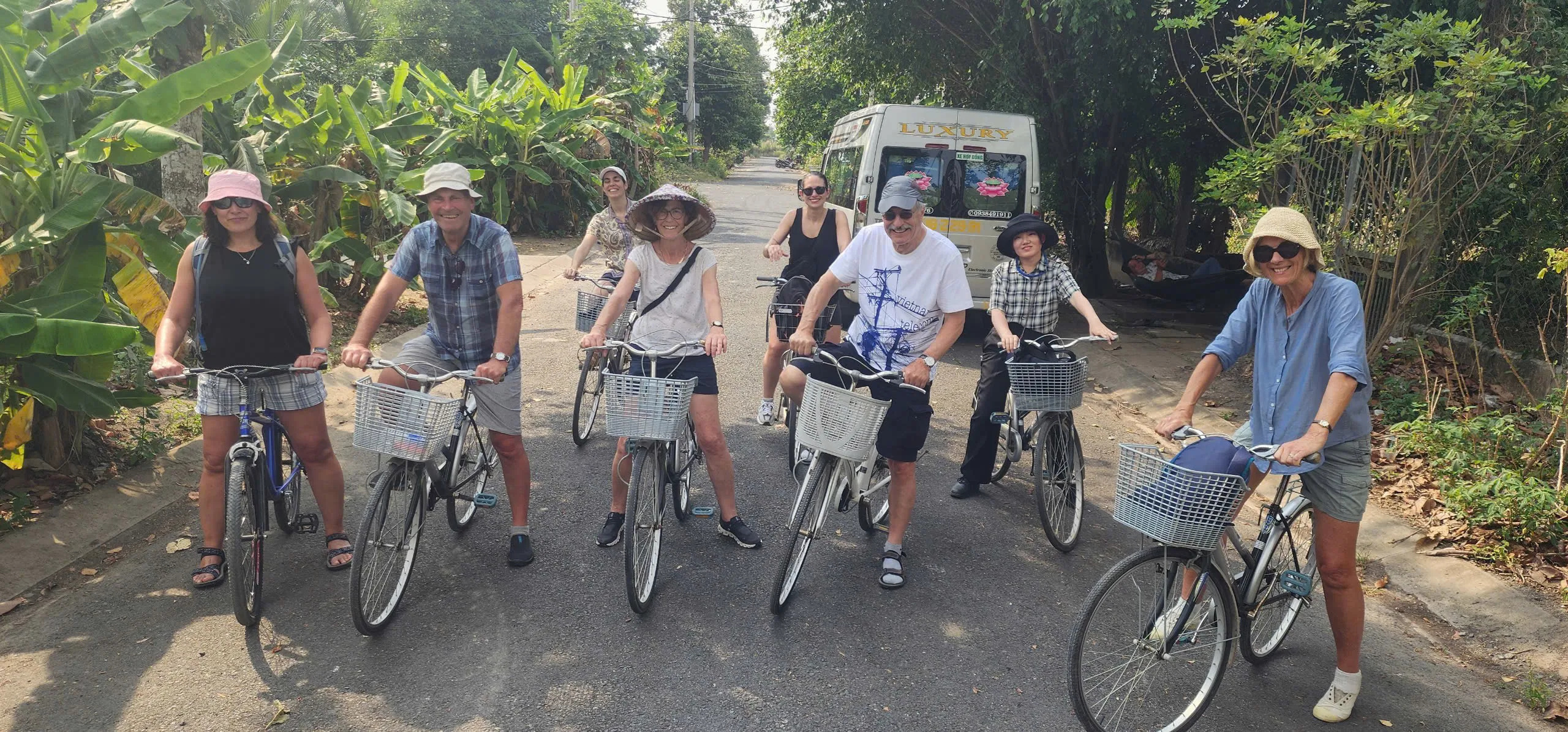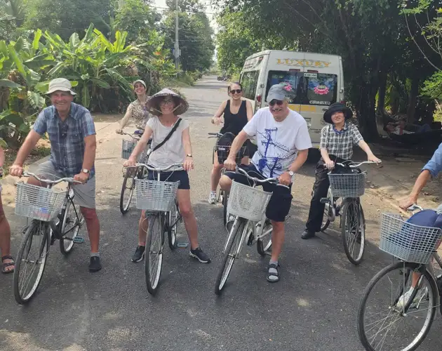 Depart from your hotel and travel to Ben Luc in the Mekong Delta. Upon arrival, check in at Family Tiny Garden Farm and begin exploring the countryside by bicycle. Ride through villages, fruit orchards, and rice fields, witnessing the slow rhythm of local life.