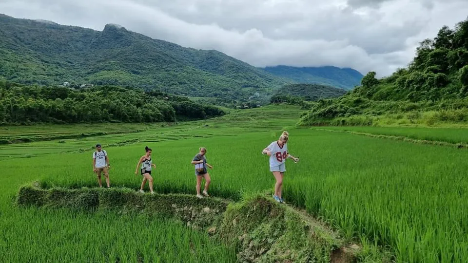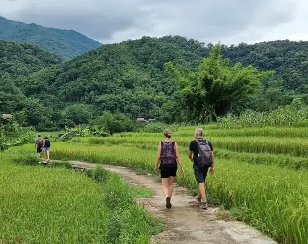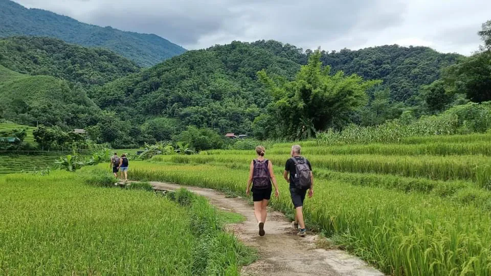 Begin your morning with a walk through the beautiful valley in front of the retreat. Descend into terraced fields, passing thatched-roof houses and water buffalo. Stop for a view of Uoi Village nestled beneath a towering mountain. Continue to Lan Village and, if time allows, visit a family practicing brocade weaving. The trek gives you a deep connection to local life and nature. Return to the retreat for check-out and transfer back to Hanoi by late afternoon.