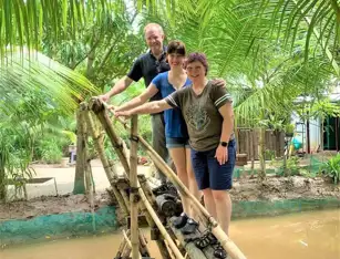 Leave the chaos of Saigon behind as you drive toward the peaceful town of My Tho in the Mekong Delta. Visit the serene Vinh Trang Pagoda before boarding a boat to cruise past floating fish farms and stilt houses. Stop at Unicorn Island to walk through tropical fruit orchards and enjoy traditional folk music. Paddle a sampan along shady canals, try honey tea, and witness coconut candy-making. After a delicious riverside lunch with specialties like elephant ear fish, cycle through a village to meet local farmers. Return to Ho Chi Minh City in the late afternoon.