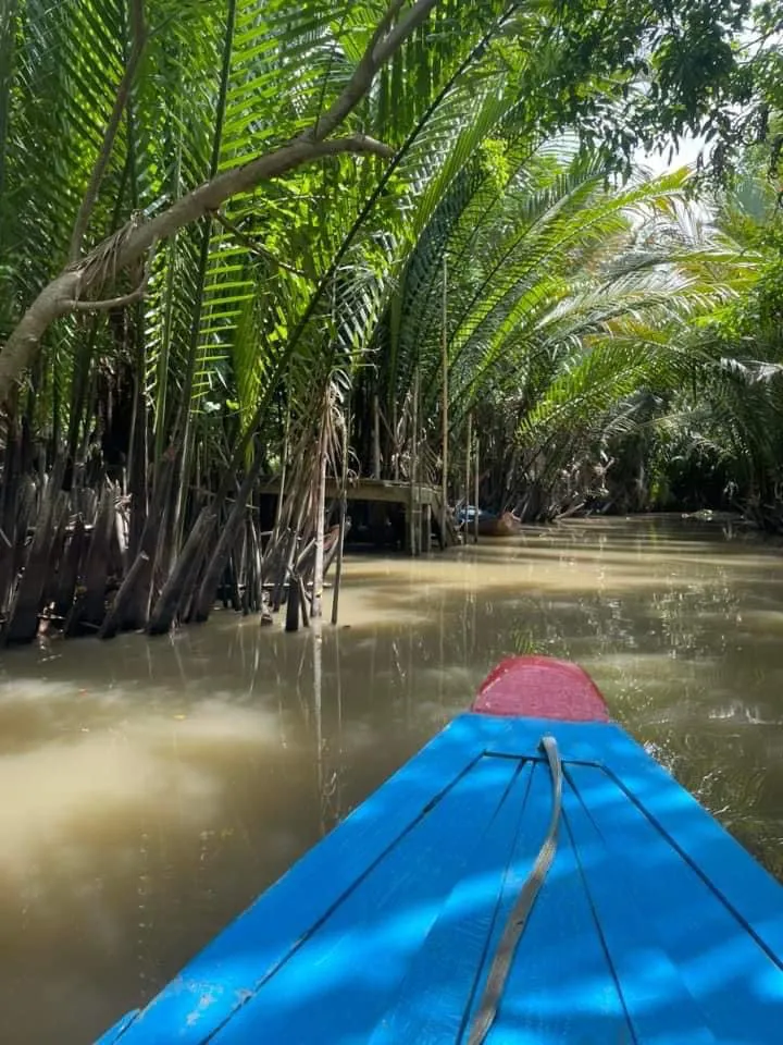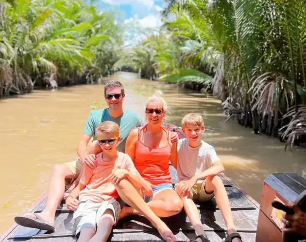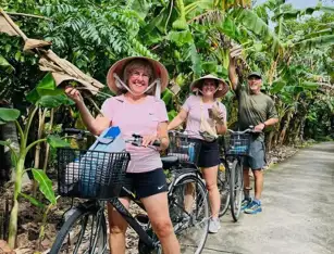 Depart Saigon for My Tho, a peaceful town on the banks of the Mekong River. Visit the Vinh Trang Pagoda before boarding a boat to cruise past fish farms and floating houses. Navigate small canals to a local village where you’ll sample tropical fruits, enjoy honey tea, and listen to folk music. Ride a horse cart and paddle a sampan through shaded waterways. After a riverside lunch featuring local specialties, cycle through the countryside to meet villagers. Return to Saigon in the evening.