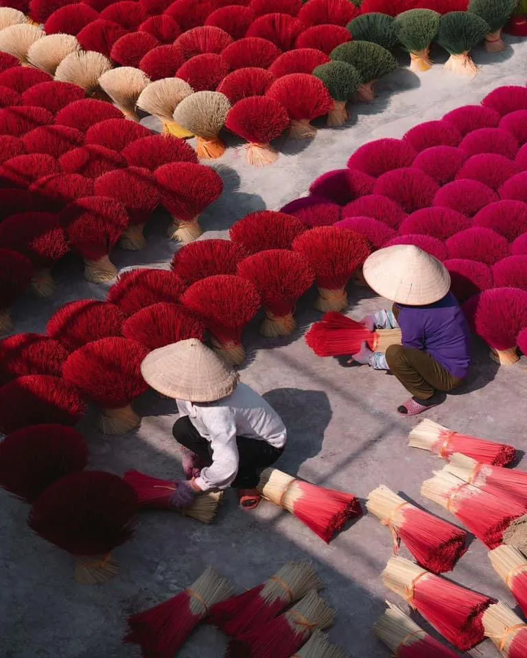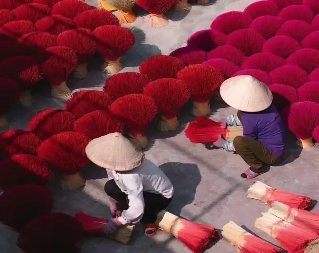 Capture striking photos at Quang Phu Cau incense village before heading to Hoa Lu, Vietnam’s ancient capital. Take a tranquil rowing boat trip through Tam Coc’s "Three Caves" amid limestone cliffs and rice fields.
